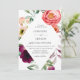 Linda moldura de diamante floral boêmico com verde, pêssego, violeta e rosa, folhagem e flores, convite para casamento. A parte traseira do cartão apresenta cor verde-névoa cônica.