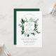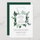 Nosso convite de casamento da Floresta Selvagem enquadra seus nomes com uma elegante borda quadrada de folhagem de aquarela em tons de vinho de floresta e verde caçador. Um exemplo moderno e elegante da tendência botânica dos casamentos de inverno ou de primavera em verde e branco fresco.