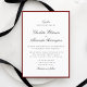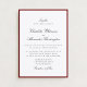 Este convite de casamento incorpora a velha estética do dinheiro com sua rica fronteira vermelha e a elegante tipografia. Perfeito para casais que buscam um aspecto clássico, eterno e sofisticado que se sinta luxuoso sem ser sobrestimado. Quer você esteja planejando um casamento outono rodeado de tons quentes ou um casamento no inverno com matizes ricos e profundos, este convite dará o tom para uma celebração na moda e refinada.
