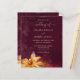 Um girassol amarelo brilhante está aninhado em desenhos botânicos modernos para criar uma fronteira floral moderna e elegante ao longo do lado esquerdo deste convite de casamento burgundy. O confete Dourado é espalhado sobre o fundo vermelho da lama vermelha para criar uma vibração rústica.
