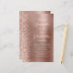 A borda esquerda deste elegante convite de casamento moderno apresenta uma borda falsa de ouro rosa. O texto personalizável combina manuscrito branco, fontes em copperplate e itálico em um fundo de metal esfregado em rosa dourado. O lado inverso apresenta um design de metal embebido e brilhante correspondente.