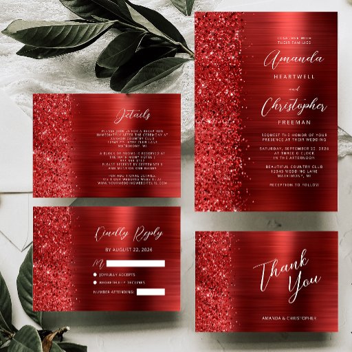 Glam Brushed Metal Glitter Red Wedding SuiteCriado por Akhates Designs