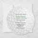 Convite de casamento redondo único, com gráficos de um olhar de bola de golfe de padrão branco. Personalize o texto preto e verde para se adequar às necessidades do seu partido de golfe. Placas RSVP correspondentes disponíveis.