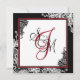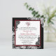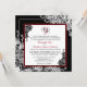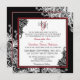 Lace branco elegante sobre fundo preto e renda preta sobre fundo branco com um cartão de convite para casamento elegante de gótico vermelho e preto.