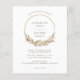 Este boho design apresenta os nomes da noiva e do noivo enquadrados por um aro de ouro decorado com grama de pampas de aquarela. Personalize o texto marrom-claro com os nomes dos casais e os detalhes do casamento. O lado inverso é um tom sólido de bege.
