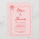 Convite para casamento de Wavy Frame, Arco Vermelho Cor-de-Rosa Este elegante convite para casamento exumenta o charme eterno com sua matiz rosa e vermelha rica, criando uma atmosfera lindamente romântica. O arco de vintage no centro adiciona um toque de elegância clássica, enquanto o quadro de onda melhora o design geral com uma aparência graciosa e fluente. Perfeitamente adequado para casais que buscam uma mistura de estilos tradicionais e modernos, esse convite vai capacitar seus convidados com sua delicada e sofisticada estética. A combinação de tons suaves e detalhes intrincados o torna ideal para um casamento que celebra o amor, o refinamento, e a beleza da design inspirada no vintage.