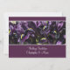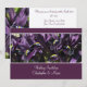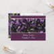 Uma fotografia de incômodos roxos profundos com textura veludo, num cartão metálico de champanhe com uma borda roxa correspondente, de cima para baixo. Uma tira da foto da íris é repetida no reverso, com um fundo metálico de cor champanhe sem cor, com texto roxo coordenado por cor. A placa metálica pode ser alterada para qualquer estoque de placa de sua escolha.