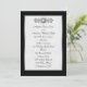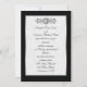 Convite formal em cinzas pretas e pálidas, borda fina de prata com rolagem de ornamentado e sotaque de joia. Papel de coordenação disponível em loja.