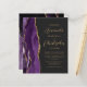 A borda esquerda deste elegante convite de casamento moderno apresenta uma cor d'água roxa, borda agitada, aparada com falso brilho dourado. O texto personalizável combina o script dourado e as fontes sans serif em um fundo preto de slate. O verso apresenta um design de agate roxo e dourado correspondente.