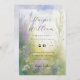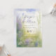 Convite de casamento que mostra um campo de lavanda de aquarela enfeitado com flores silvestres e grama. Sacudir ao fundo para encontrar nuvens de aquarelas.