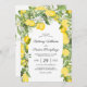 Capture a beleza do verão com seus convites de casamento! Nossa design moderna apresenta um clássico centro de arco branco acompanhado de limões cítricos vibrantes, folhagem botânica exuberante e um modelo de casamento eterno que é fácil de personalizar para corresponder ao seu estilo único. Celebre seu dia especial com o convite perfeito - perfeito para todos os eventos de verão!