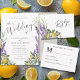 Design botânico russo e elegante em aquarela. Apresentando citrinos e elementos de lavanda com verde pintado em aquarela. Esta é nossa design original criada com seu dia especial em mente. Divirta-se personalizando esta modelo para fazer o convite perfeito para o casamento.