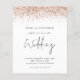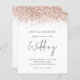 Um valor para o alternativo do ORÇAMENTO em tamanho menor de 4,5 x 5,6" de semirbrilho de 110 lbs, que é de espessura semelhante a um cartão postal (no entanto, não é adequado para uso como cartão postal). POR FAVOR, OBSERVE QUE HÁ UM convite por folha. Convite para Casamento Glitter Dourado Rosa de Orçamento. Um script de estilo de escrita manual definido para o Wedding e o resto do texto que você pode personalizar facilmente, com uma borda falsa em ouro rosa na borda superior de ambos os lados.