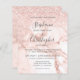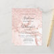 Um design moderno, chic, com um elegante fundo de mármore, aparado com brilho falso em tons de ouro rosa, cor-de-rosa e branco. Os nomes da noiva e do noivo aparecem no script de cinza de carvão, com o texto restante na fonte sans serif. O mármore e o design de brilho repetem-se ao contrário.