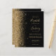 A borda esquerda deste elegante convite de casamento moderno apresenta uma borda falsa de ouro. O texto personalizável combina manuscrito colorido de ouro pálido, fontes copperplate e itálico em um fundo preto. O verso apresenta um design preto e dourado correspondente.