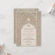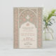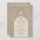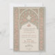Este convite para o casamento é um delicado equilíbrio de cor-de-rosa-pincelada e verde-sábio, inspirado pelos intrincados padrões do local islâmico. Celebrando uma mistura de arte tradicional e design moderna, o convite apresenta um fundo verde sábio com padrões de rendas florais e geométricas embebidas que lembram os detalhes do ornamentado encontrados na arquitetura islâmica. O arco arquitetônico nos quadros frontais detalha o evento em um roteiro elegante, definido em um fundo cremoso que complementa os tons de borda. O verso do convite espelha este design, fornecendo um cenário harmonioso para informações adicionais sobre eventos ou uma mensagem personalizada para seus convidados. Este convite é perfeito para casais que procuram um anúncio gracioso e culturalmente rico para o dia do seu casamento.
