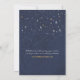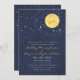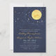 Vocês estão na lua um para o outro? Anuncie seu grande dia com este convite inspirado nesta noite estrelada. Mostrados em tons de marinho, amarelo claro e branco com acentos de laranja e aqua. A parte traseira inclui espaço para texto adicional ou um endereço de site.