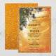 Celebre seu amor com este elegante convite de casamento rústico com um fundo cor de laranja-quente, borda brilhante de ouro mole e delicados sotaques de folhagem verde. Perfeito para casamentos ao ar livre ou jardim, este design capta o brilho aconchegante da luz de velas e das luzes de cordas, criando uma atmosfera romântica e de ouro hora. Totalmente personalizável com seus nomes, data e detalhes de local — ideal para as comemorações do outono, do boho ou inspiradas no pôr do sol.