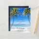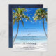 Budget Beach String Lights Wedding Invitation - o convite perfeito para o seu casamento na praia apresentando uma bela praia tropical com areia branca e palmeiras adornadas com luzes brilhantes de cordas. Nosso modelo de alta qualidade torna tão simples para você personalizar seu papel de carta especial de casamento. *Esta é uma opção de convite orçamentário. Se preferir um estoque de papel mais espesso, escolha nosso cartão postal ou opção simples. O convite faz parte de uma coleção. Desenhado pela Designer de Casamentos Beverly Bainbridge Magnolia & Thistle