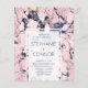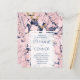 Estes elegantes convites de casamento orçamentários apresentam um fundo azul marinho, rosa-pincel e mármore dourado. O texto aparece na fonte simples, moderna e azul de sans serif, em um retângulo branco semitransparente alinhado com a parte inferior da placa. O design de mármore também aparece no verso. NOTA: os envelopes não são incluídos automaticamente nestes convites de orçamento, portanto lembre-se de escolher a opção "envelopes brancos"!