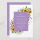 Um convite moderno para o casamento e artigos de papelaria que incluem lavanda e girassol.
