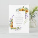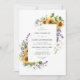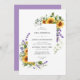 Um convite moderno para o casamento e artigos de papelaria que incluem lavanda e girassol.