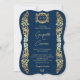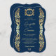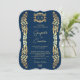 Convite de casamento Elegante Blue and gold Frame, personalize o convite de casamento azul e dourado adicionando detalhes.