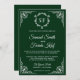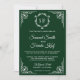 Amaze seus convidados com este convite de casamento estilo vintage com uma elegante borda branca de ornamentado e um belo monograma contra um fundo verde-escuro. Basta adicionar os detalhes do seu evento neste modelo fácil de usar para torná-lo um convite de tipo único. Este cartão é totalmente personalizável. Todos os textos são editáveis e a cor de fundo pode ser facilmente alterada para quais melhores ajustados você pode fazer.