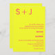 Este convite de casamento para o Modern Monogramas amarelo e rosa é totalmente personalizável. O monograma da noiva e do noivo é exibido com destaque na frente e no verso.