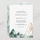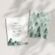 Este convite de casamento verde e dourado é perfeito para o seu elegante casamento da floresta boho. Com uma paisagem rústica esmeralda verde-aquática pontilhada com árvores, pássaros, e destaques da folha de ouro. É só o que você está procurando para completar seu único casamento de destino moderno.
