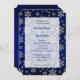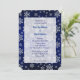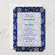 Imagens bonito em flocos de neve prateada em um fundo azul escuro fazem uma elegante borda neste convite para casamentos no inverno. Sua informação de casamento é colocada em um campo semitransparente que permite que as imagens do floco de neve apareçam. Se você quiser alterar o tamanho, a cor, a fonte ou o local do texto, poderá fazer isso escolhendo "Personalizar". A parte de trás do convite é um gradiente de cor sólida azul correspondente.
