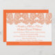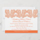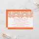 Este convite de casamento totalmente personalizável apresenta um fundo branco com um novo design paisley cor de laranja de verão. O verso tem um fundo laranja correspondente. OU001