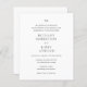 Convite de casamento de orçamento elegante com um design simples e clássico com o seu monograma e os seus detalhes de evento numa fonte serif tradicional.