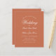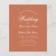 Um simples convite para casamento de orçamento minimalista. Tem apenas um texto branco sobre fundo de terracota. A palavra Casamento e os nomes são escritos em um roteiro caligráfico elegante. Terracotta é um castanho avermelhado, uma cor moderna, natural e terrestre.