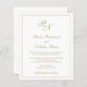 O convite de casamento do estilo tradicional, com um design simples e clássico com seu monograma inicial e seus nomes em um dentro de caligrafia elegante de uma fronteira fina. Todos os elementos de design estão em dourado falso sobre um fundo branco e podem ser alterados na ferramenta de edição de design. Esta design de classe é perfeita para um casamento formal.