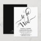 Este simples convite de casamento minimalista é elegante e na moda, enquanto ainda é amigável e barato. Ele apresenta um design preto e branco clássico com leitura de caligrafia de script: To Be Wed e todas as informações importantes por baixo. Há espaço opcional no verso para o URL do seu site de casamento. Na moda e sofisticado este convite é uma maneira maravilhosa de convidar seus amigos e família a compartilhar sua alegria em seu dia especial.
