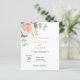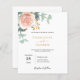 Um fundo branco chic. Decorados com ouro-rosa e folhas de eucalipto cor-de-rosa-esbranquiçada, flores de rosa e cor-de-rosa-esbranquiçada, galhos, verde-verde e um cinzeiro de ouro falso. Personalize e adicione seus nomes e detalhes do casamento. Letras pretas e ouros coloridas. Voltar: adicione o URL do site de casamento ao código QR para obter detalhes e/ou RSVP. 1 folha = 1 convite impresso de borda a borda.