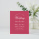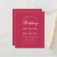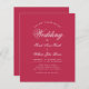 Um simples convite para casamento de orçamento minimalista. Ele tem apenas um texto branco sobre uma moderna nuance de magenta/vermelho. A palavra Casamento e os nomes são escritos em um roteiro caligráfico elegante.
