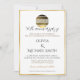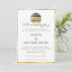Convite de casamento do Ouro de 50º aniversário com um Design Clássico e Minimalista Este convite de casamento inclui tudo o que você precisa para anunciar e celebrar seu dia especial. O design apresenta uma bola de disco de ouro com a palavra "casamento" gravada em um simples fundo branco, usando fontes negras e marrons de ouro elegantes. Todas as seções de texto podem ser personalizadas individualmente.