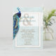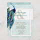 O Elegante Aqua Love Pird Peacock Convites De Casamento. Chinoiserie inspirada, Turquesa, Teal, Verde e Azul-Marinho, Casamento de Destino Tropical, com um sutil padrão de palmeiras, Verdigris Teal Blue Sea Ocean Blue Design. Perfeito para os Themes Casados da Ilha de Fairytale Gatsby Lovebird 20.