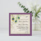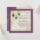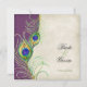 Este é um convite moderno e sofisticado. Apresentando penas Peacock estilizadas, de cor aquosa, num local pintado à mão e fundo pergaminho com a sua escolha de cor de fundo, mostrada aqui em púrpura pavão. VOCÊ TAMBÉM PODERIA GOSTAR DE:
