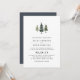 Uma escolha rústica para casamentos em regiões montanhosas, florestais ou invernais, nosso convite para o casamento de Tall Pines apresenta um trio de árvores verdes e altas silhuetadas em tons ricos de verde caçador. Adicione seus detalhes de casamento usando os campos fornecidos, em cinzas de carvão profundo.
