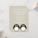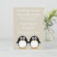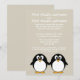Um convite para casamento informal com um desenho animado limpo e moderno de um pinguim.
