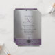 Este convite para o casamento de rico com o talo de Paris incorpora uma silhueta da Torre Eiffel, um molde floral brilhante e um brilho metálico roxo e prateado. Mostrado em papel metálico com cantos do rico, mas você pode mudar o tipo de papel e o estilo do canto.