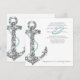 Este convite de casamento de praia tropical e chic mostra a imagem de uma corda e âncora de um navio com padrão úmido azul claro e azul claro e cinza de ardósia em um fundo branco. Um perfeito design de tema náutico para qualquer festa ou evento do lado do oceano! Procure no meu compro outros produtos correspondentes.