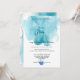 O convite de casamento da Praia Romântica apresenta um esplash de espuma azul pintado manualmente com uma escrita feminina de caligrafia. facilmente personalizado com suas informações pessoais para o evento especial de dia de casamento na praia.