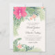 Convide seus hóspedes para o paraíso por um dia com este design retrotropical. Apresentando folhas e flores tropicais em pinks, laranjas, verdes e um padrão de ratos estilizado nas costas, esta design traz à mente uma divertida e ensolarada festa tiki ou luau. Perfeito para seu caso casual de praia, festa de piscina selvagem ou celebração de destino nos trópicos. Compre a coleção hoje para combinar com papelaria, e diga "Aloha" para o dia perfeito!