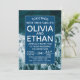 Este moderno convite azul marinho náutico é perfeito para um cruzeiro ou festa de noivado de praia, casamento após festa, aposentadoria, graduação ou qualquer evento feliz. A simples design apresenta uma bela paisagem marinha, ondas marítimas, animais marinhos e recifes coloridos.