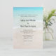 Modelo de convite para casamento por dólares de areia. A água azul do mar tropical e a areia das praias são o fundo com duas grandes imagens de areia dólar. O texto impresso em preto é fácil de personalizar para o seu evento em três locais. Inverter contém a mesma imagem de fundo. A maioria dos tamanhos funcionará para este design, com upgrades de papel e formas de borda opcionais.