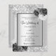 Fundo de aspecto fino prateado decorado com flores, flores e brilho fino prateado, brilhos. Personalize e adicione seus nomes e detalhes do casamento. Letras negras.